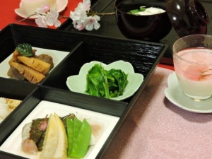 | メニュー | ミルフィーユずし 菜の花のツナ和え 新人参のきんぴら きのこのお吸い物 いちご大福 |