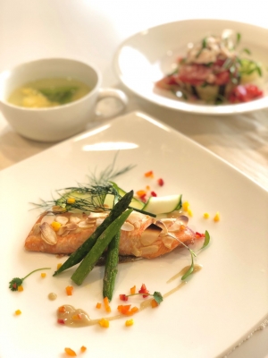 アーモンドの香ばしさが美味しい魚のグリル、白ワインソースも難しくないですよ。講師 やすまゆかり 受講料 2,000円(税込)※振込用紙にて支払い 定員 10名 メニュー ・米ナスと生ハムのサラダ