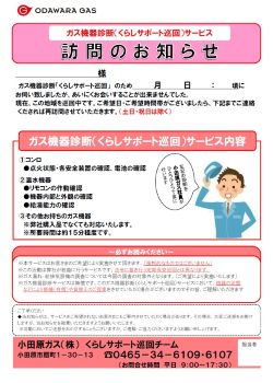 ご不在の場合、『ガス機器診断(くらしサポート巡回)サービス 訪問のお知らせ』を入れさせていただきます。小田原ガスまでご連絡をいただければ再訪問いたします。